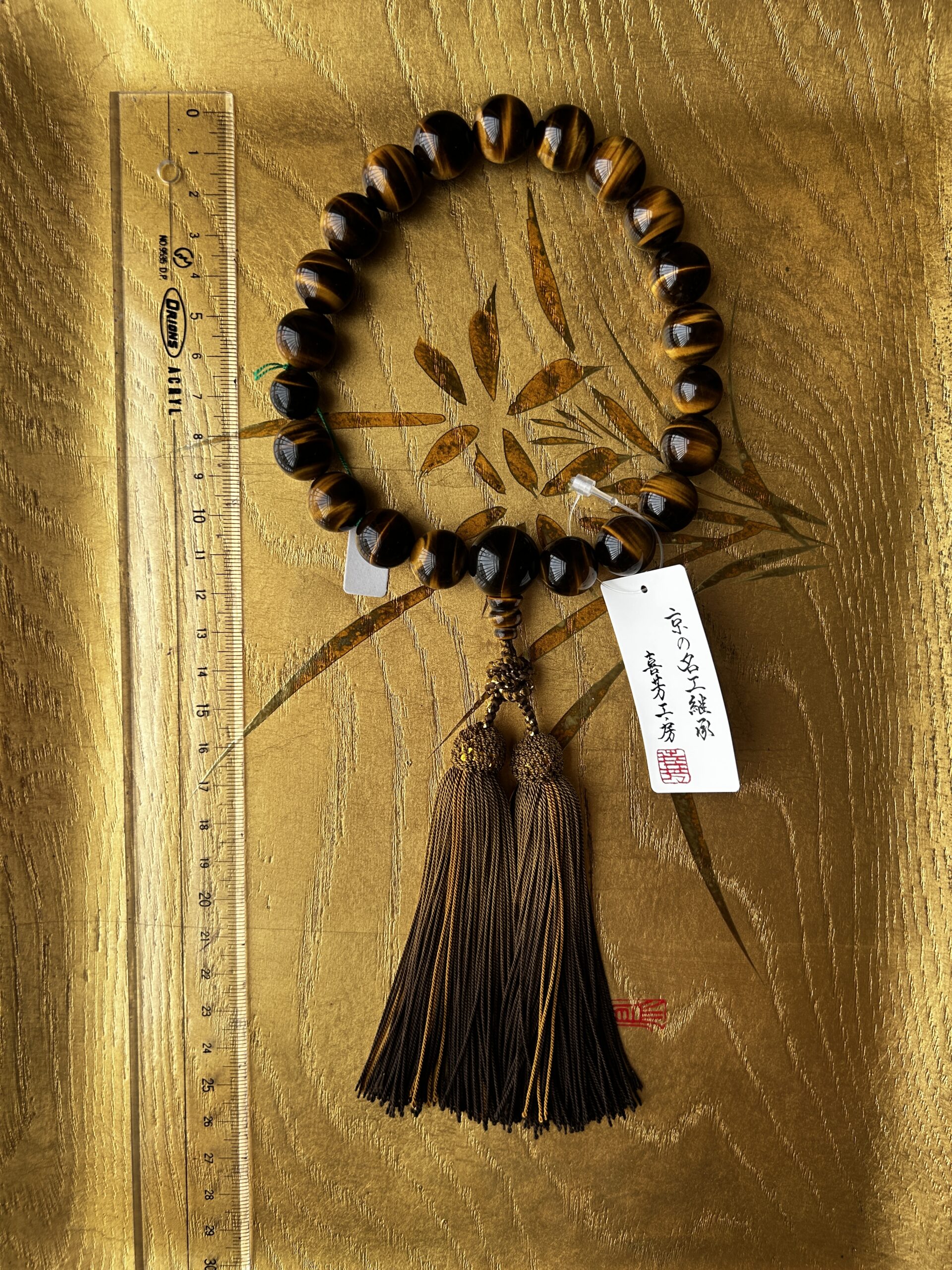 一点物 極上虎眼石 16mm 京念珠 数珠 19玉 すべての宗派で使える 最高級 片手略式 【 京都府伝統産業優秀技術 】 証明書付 日本製 / 手作り念珠 葬式 葬儀 墓参り 法事